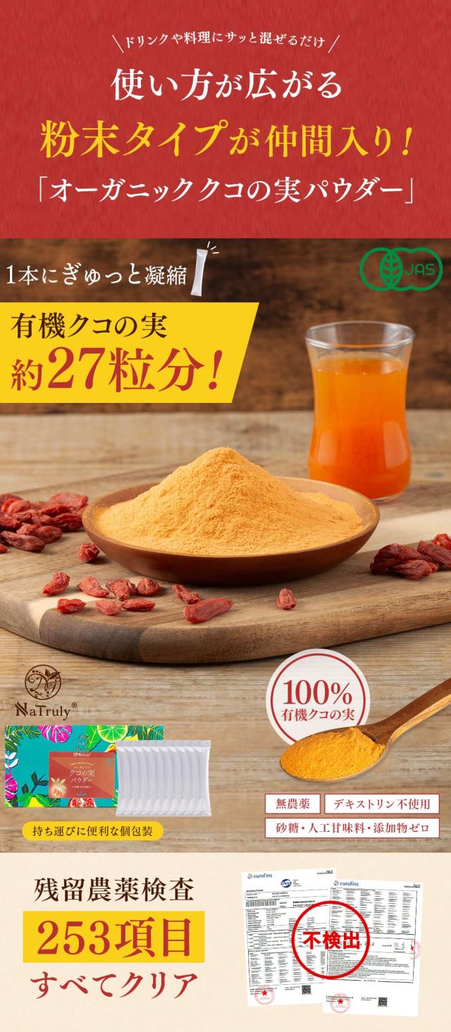 オーガニック クコの実パウダー スティック3g×10本 有機JAS認証 デキストリン不使用 ゴジベリーパウダー ウルフベリー 枸杞の実 クコ ナトゥリー