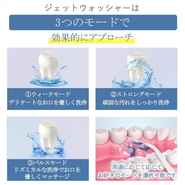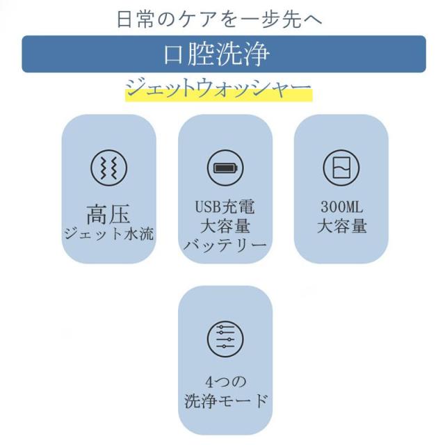 口腔洗浄器 ジェットウォッシャー 口腔洗浄機 歯ジェットウォッシャー 歯垢除去 替えノズル4本付き ウォーターフロス 歯間 USB充電式 電動 大容量 IPX7防水 簡単操作 省スペース 電動歯ブラシ 水流歯ブラシ コンパクト
