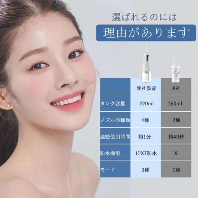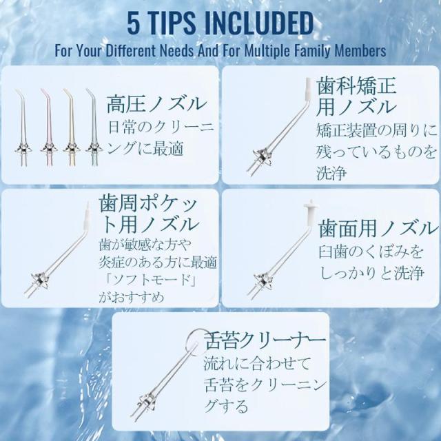 超音波口腔洗浄器 替えノズル4本付き 口腔洗浄機 歯垢除去 ジェットウォッシャー 水圧調整 電動歯ブラシ ウォーターフロッサー 歯間洗浄機 IPX7生活防水 口臭 矯正 USB充電 新生活応援