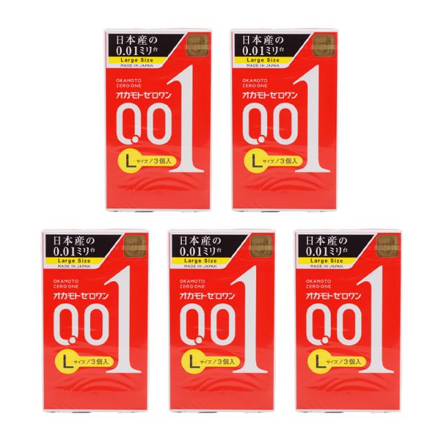 [5個セット]OKAMOTO オカモトコンドームズ オカモト ゼロワン 0.01ミリ Lサイズ ポリウレタン (PU) 3個入り 岡本 コンドーム 避妊具[ギフトラッピング対応]