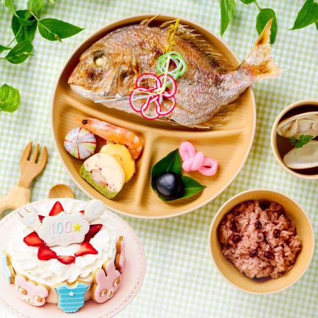 お祝い膳.comオリジナル スペシャルオーダー! 100days アニバーサリーケーキがセットになった、とびきりかわいいお食い初め膳