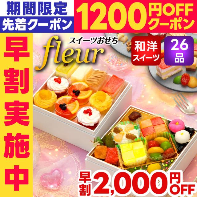 \1200円クーポン/ スイーツ おせち 2026 おせち料理 早割 予約 【fleur】 6寸 全26品 2人前 3人前 おせち料理 お節 御節 冷凍 スイーツおせち おせちの代わり 進化系おせち ケーキ お節料理 デザート 子供 子供用 お歳暮 ギフト 早割り お正月 蔵王福膳
