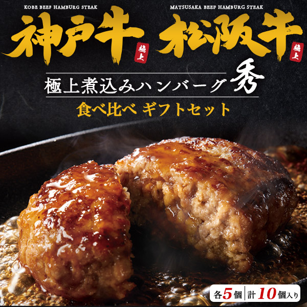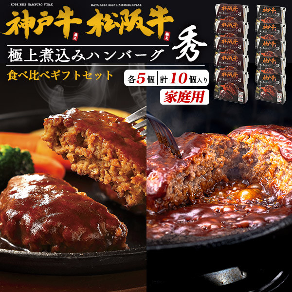 グルメ ハンバーグ 神戸牛 / 松阪牛 2種 食べ比べ 各5個 合計10個 ブランド牛 100% 極上煮込みハンバーグ(170g×10袋)レンジ 黒毛和牛 温めるだけ お手軽 お惣菜 おかず 簡単 個包装 誕生日プレゼント 贈り物 お祝い 内祝い お返し 2025年 お歳暮 熨斗 送料無料