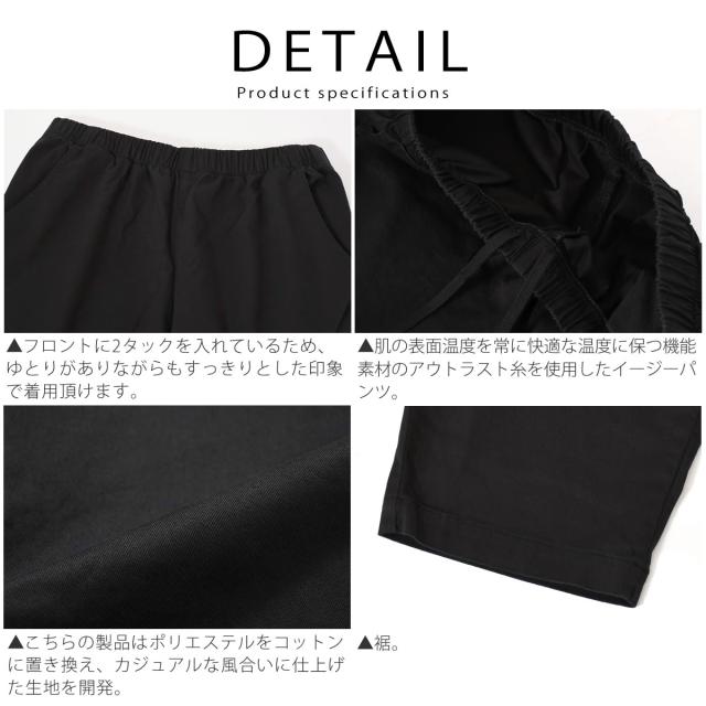 肌の表面温度を常に快適な温度に保つ機能素材のアウトラスト糸を使用したイージーパンツ。