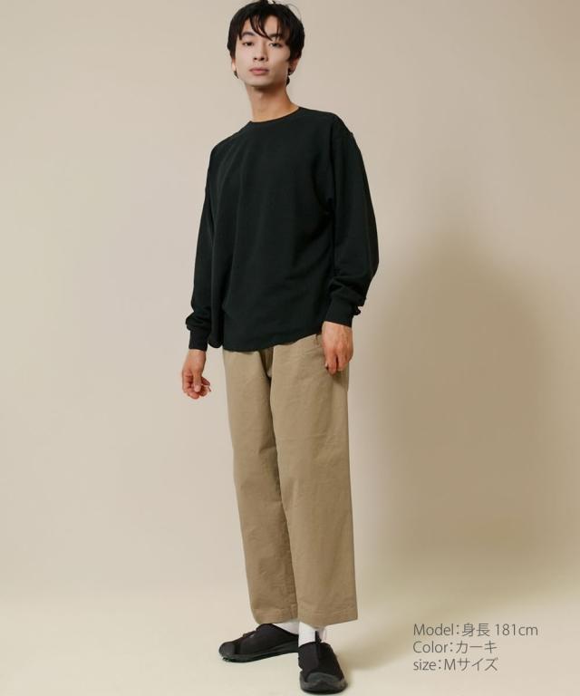 | ■ JOHNBULL ジョンブル 商品説明 肌の表面温度を常に快適な温度に保つ機能素材のアウトラスト糸を使用したイージーパンツ。 JOHNBULLでご好評頂いている従来のアウトラストとは異なる生地感を楽しんで頂けるアイテムとなっております。 従来のアウトラストパンツではポリエステル、レーヨンを使用しており合繊繊維らしい柔らかでスポーティな雰囲気の生地を使用しています。 こちらの製品はポリエステルをコットンに置き換え、カジュアルな風合いに仕上げた生地を開発。 調温の機能性は維持しつつもカジュアルアイテムとより合わせやすいアイテムにアップデートしています。 ■ポイント ・肌の表面温度を快適に保つ機能性素材 ・コットンを使用したナチュラルは風合い ・綺麗めのデザインでオフィスカジュアルにもおすすめ ■シルエット 腰回りに余裕を持たせ、膝下に向かって細くなったワイドシルエット。 フロントに2タックを入れているため、ゆとりがありながらもすっきりとした印象で着用頂けます。 ■スタイリング スラックスライクなデザインとコットンのナチュラルな生地感が使いやすいアイテムです。 ウエストゴムのイージー仕様ですが、ベルトループもあるためベルトを通してビジネスシーンでも着用頂けます。 また、フロントにタックが入ったデザインのためタックインしても綺麗に着用頂けます。 |