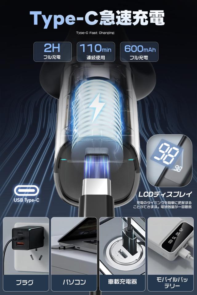 【LCDディスプレイ・Type-C充電】液晶ディスプレイを採用したこのシェーバー メンズは、充電の状態を視覚的に表示し、いつでも電池残量を確認できます。初心者でも簡単に操作でき、使いやすい設計です。