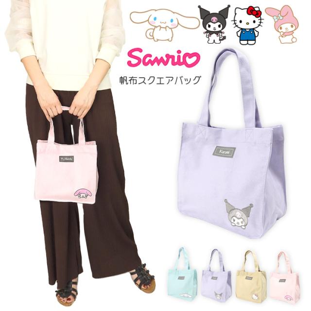 【メール便送料無料】Sanrio シナモロール クロミ ハローキティ マイメロディ 帆布 キャンバス スクエア トートバッグ 小さめ 全4色 サンリオ Cinnamoroll Kuromi HELLO KITTY My Melody ミニトート ミニバッグ スクエアバッグ 四角 鞄 かばん 2982