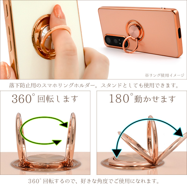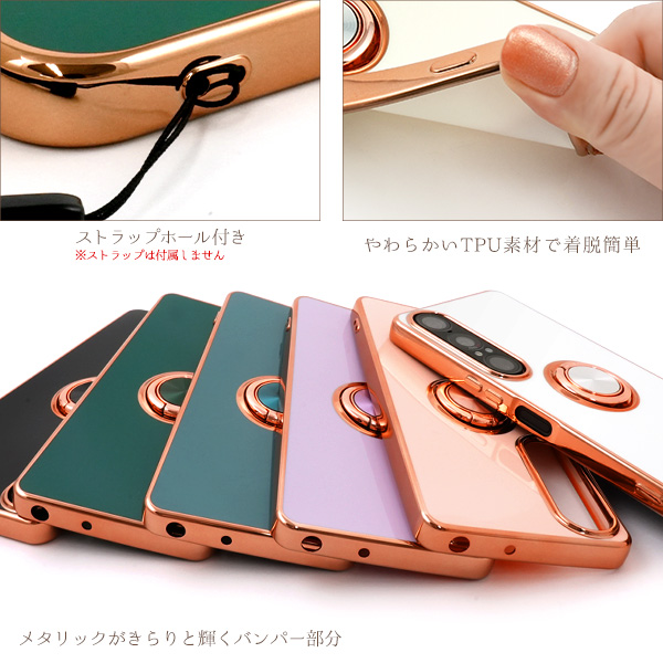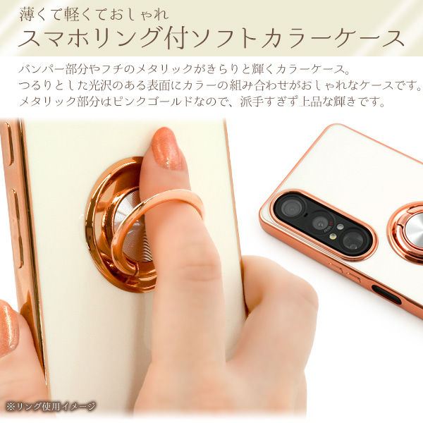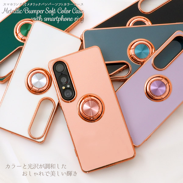 スマホケース Xperia 1 VII SO-51F SOG15 A501SO XQ-FS44 スマホリングホルダー付き メタリックバンパーソフトカラーケース 携帯ケース シンプル お洒落 上品 指の変形防止 リング付き スマホカバー 携帯カバー お洒落 落下防止リング au携帯保護カバー