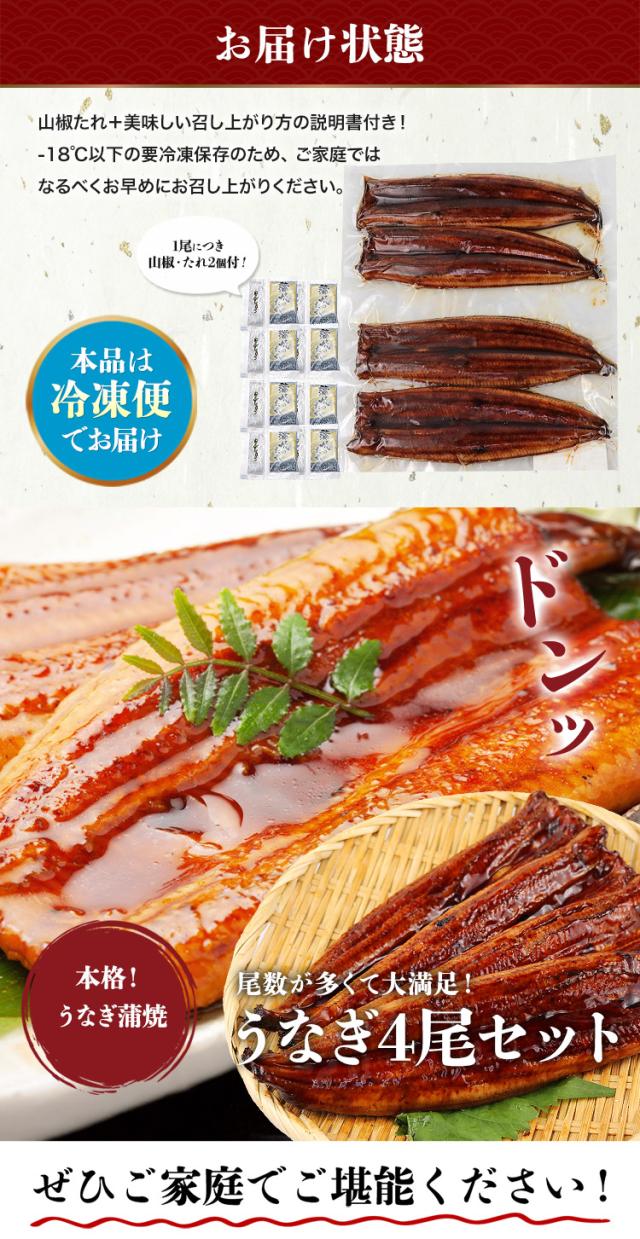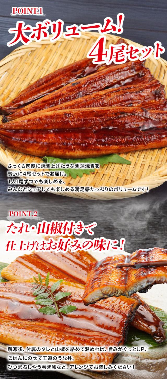 うなぎ 4尾 セット 約500g 鰻 ウナギ 蒲焼き かばやき 山椒 たれ付