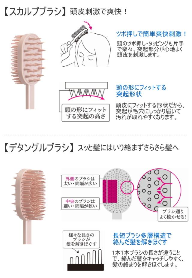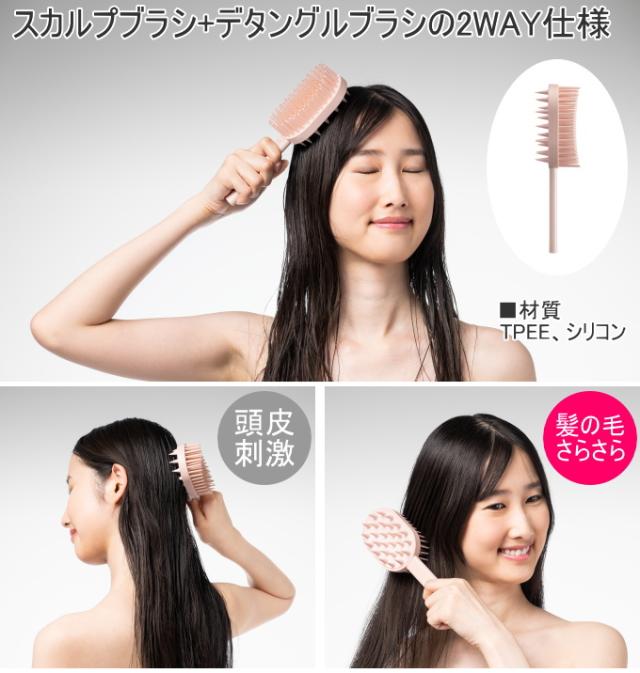 スカルプ+デタングルブラシ HB-134 スカルプブラシ ブラシ ヘアブラシ くし クシ 櫛 2WAY ヘアケア マッサージ 刺激 お風呂 バスタイム ツボ ツボ押し タッピング 突起 頭 頭皮 ヘッド 毛穴汚れ ブラッシング 髪 髪の毛 健康 健康グッズ ピンク アカイシ AKAISHI