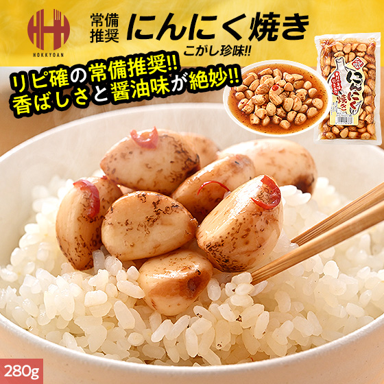 本製品は焼きニンニクを秘伝の醤油タレで味付けした人気商品です。1袋280g入りですので、そのままはもちろん、ご飯のお供やおつまみ、料理の具材や味付けなど、いろいろな食べ方でお楽しみ頂けます♪