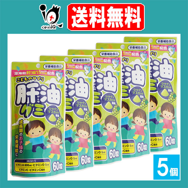 【栄養補助食品】こどものサプリ 肝油グミ シャインマスカット風味 60粒×5個セット【タムラ活性】深海さめ肝油15mg配合 成長期のお子様の栄養補給に ビタミン配合サプリメント ビタミンA ビタミンD ビタミンE ビタミンC
