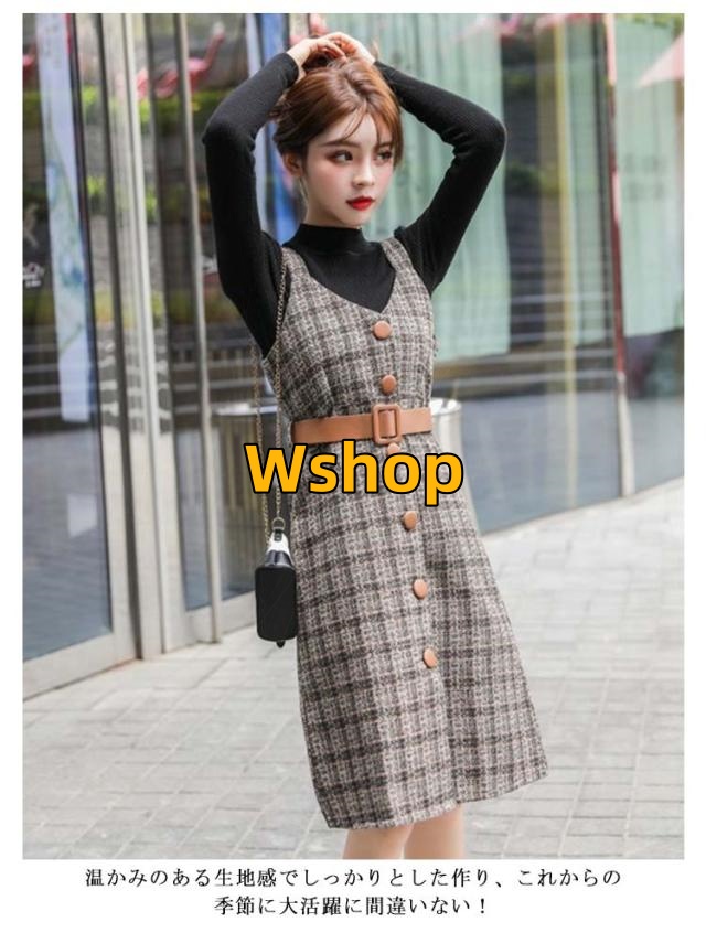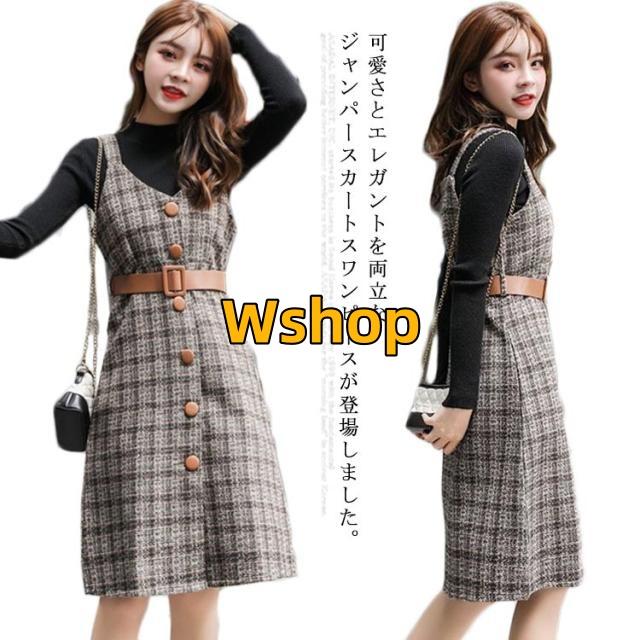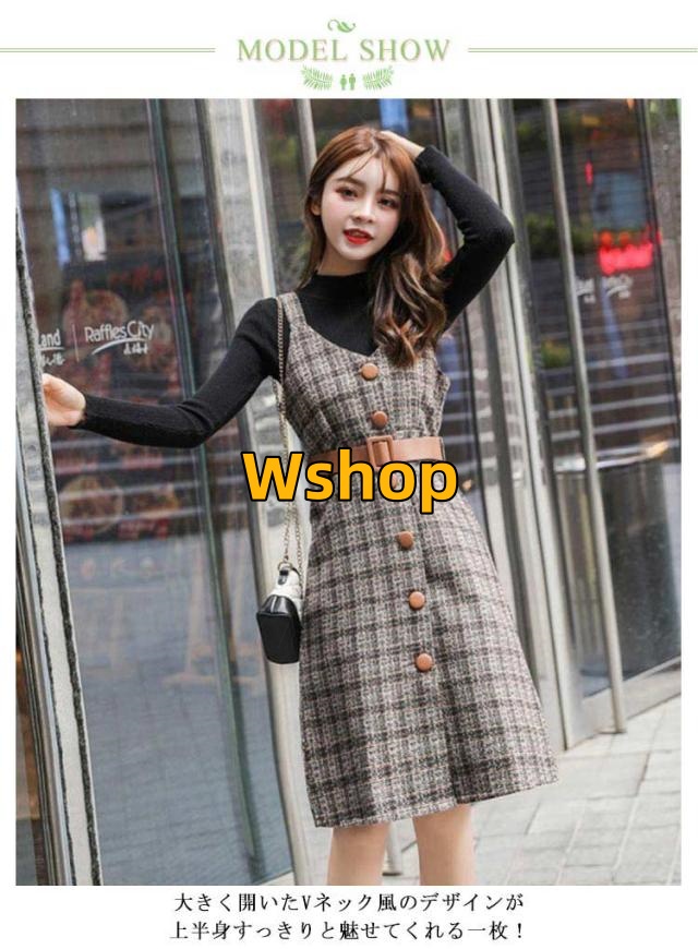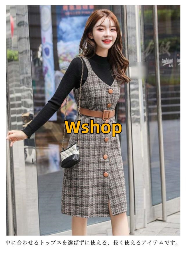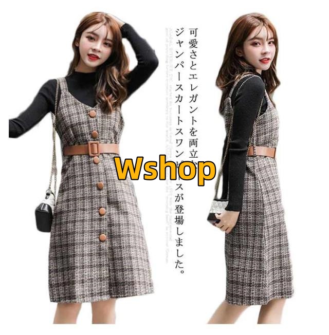 在庫限りの大特価 多機能デザイン ジャンスカ 格子 収納便利 可愛い SNS話題 サロペットワンピース 秋冬 グレンチェック チェック ワンピース サスペンダースカート ジャンパースカートワンピース ライン 今だけ ネック ジャンパースカート 即納対応中