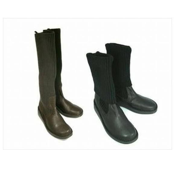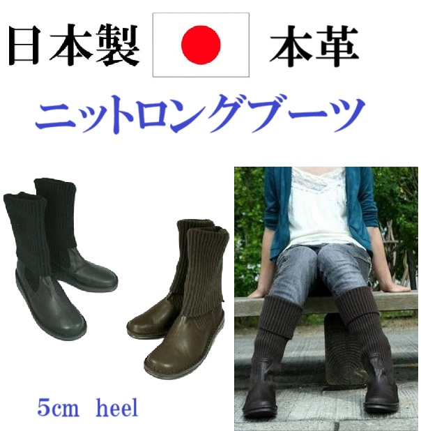 日本製 本革ブーツ ロングブーツ ニットブーツ ミドルブーツ レディース ローヒール フラット 厚底 ウェッジ ブーツ ニット 歩きやすい 痛くない 幅広 黒 茶