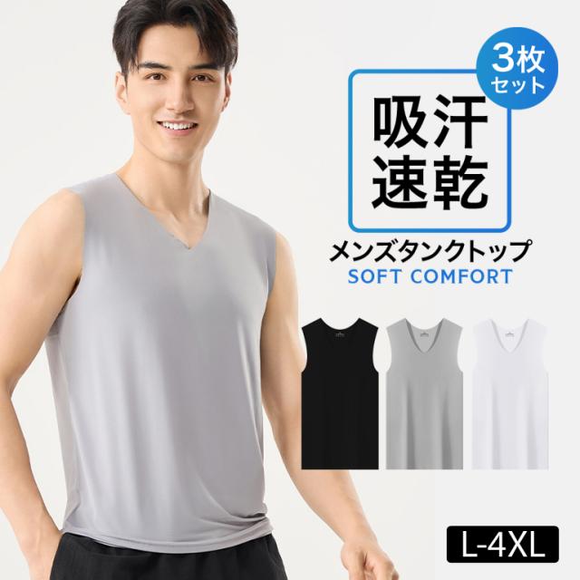 メンズ タンクトップ 3枚セット インナー 吸汗速乾 通気性 肌触り抜群 涼感 スポーツ 筋トレ ランニング 部屋着 下着 ノースリーブ 夏用 ブラック ホワイト グレー 大きいサイズ L-4XL
