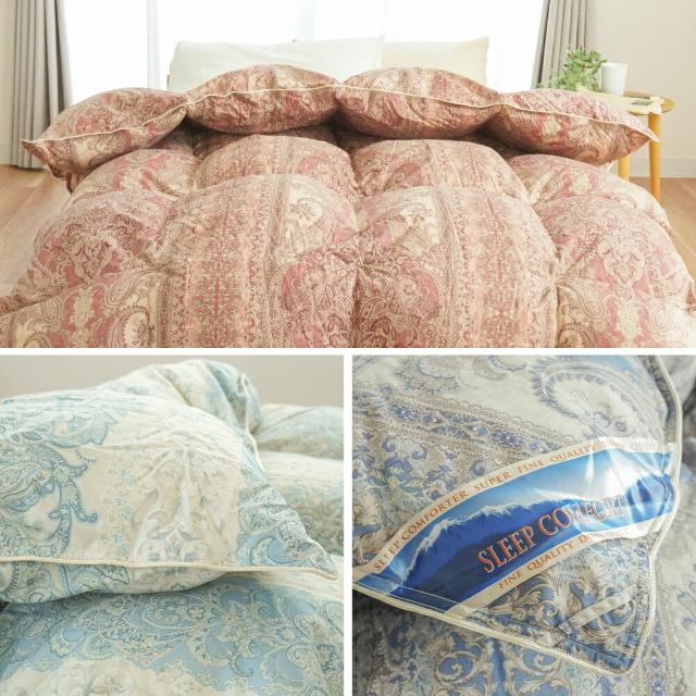 | ・リサイクルグースダウンを使用 「リサイクル」と聞くと清潔ではないのではないかと感じられるかもしれません。しかし、新毛よりもリサイクルダウンの方が、洗浄の回数が多く、清潔で臭いの少ないダウンに仕上がります。ダウン率93%でふわふわ。 ・業界水準6倍の洗浄度(洗浄度3000mm)羽毛の洗浄にすすいだ水を試験管に入れ、どの深さまで底が見えるかで測ります。500mm以上が合格となり、清浄度の数値が高いほど清潔で綺麗な羽毛であることを表します。臭いの原因となる油脂分を徹底除去。 ・暖かさを逃がさない立体キルト羽毛の持つふくらむ力を存分に発揮するため、羽毛の小部屋を立体的につくったキルトです。 圧縮されて輸入される羽毛を専用の機械にかけ、蒸気や熱の力でゴミやダニ・細菌を消滅させ羽毛本来のふわふわな状態に復元させました。 ・軽くて快適な綿混生地軽くて丈夫なポリエステル繊維に、コットンを配合して吸湿性をプラス。 ・なめらかな肌触り ピーチスキン加工桃の薄皮のように表面をうっすらと起毛させることで、なめらかでソフトな肌触りに。 | |