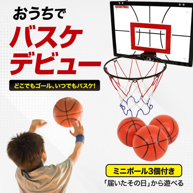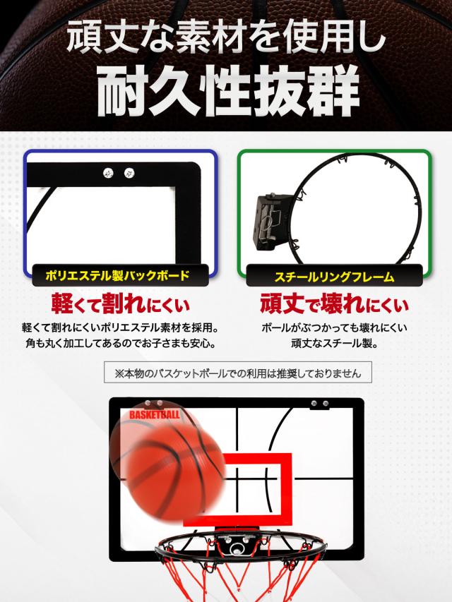 お部屋がすぐにバスケットコート!ドアや壁に掛けて簡単設置。ボール3個と空気入れ付きで、すぐにシュート練習が楽しめる室内バスケットゴール。
