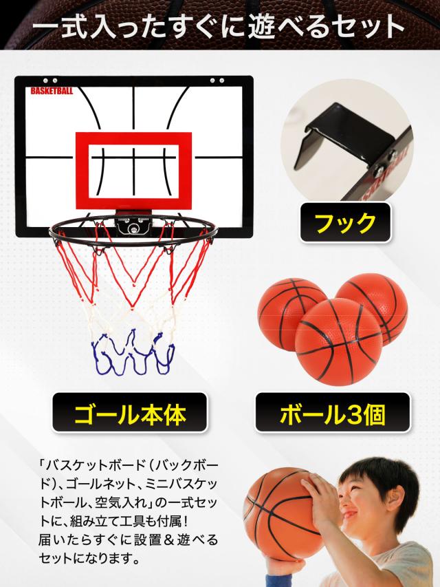 壁掛け バスケットゴール 中サイズ/30×45cm 室内 ドア掛け 家庭 子供 バスケ シュート練習 ミニバスケットボード おもちゃ ボール3個付き 空気入れセット
