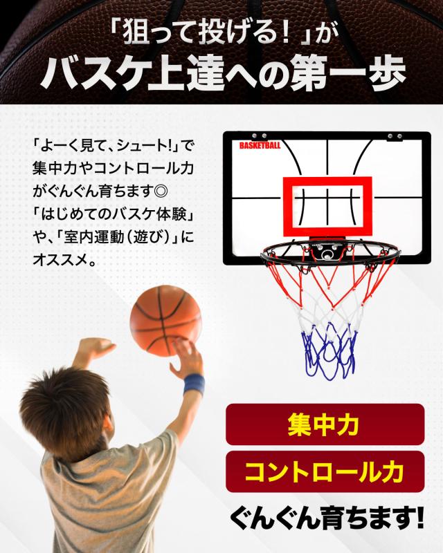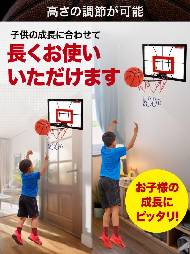 【お家遊びに飽きたお子さまにぴったり】外で遊べない日や雨の日でも、ドアや壁に掛けるだけでお部屋があっという間にバスケコートに!スペースがなくても楽しく体を動かせ、自然に運動習慣が身につきます。遊びながら体力づくりもできるので、ご家庭でのスポーツデビューにもおすすめです。