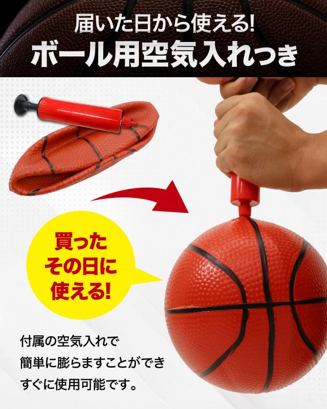 【ボール3個付きですぐ遊べる】柔らかいゴム製の安全なボールが3個と空気入れ付き。届いたらすぐに家族や友達とシュート練習を楽しめます。室内でも安心して使え、兄弟や友人と一緒に盛り上がれます。※本物のバスケットボール使用は非推奨。