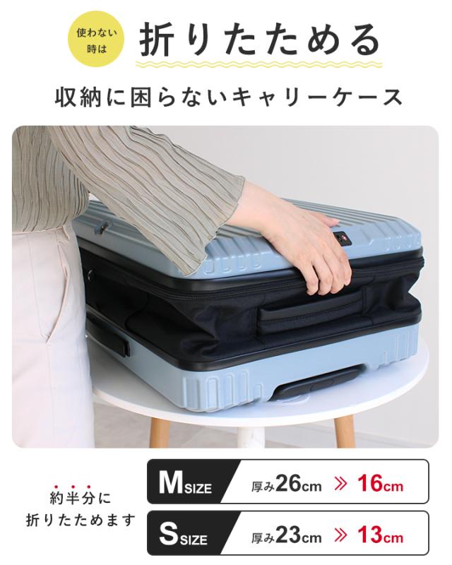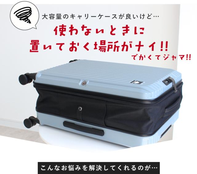 このキャリーケースは約半分に折りたためてスリムに収納できます。