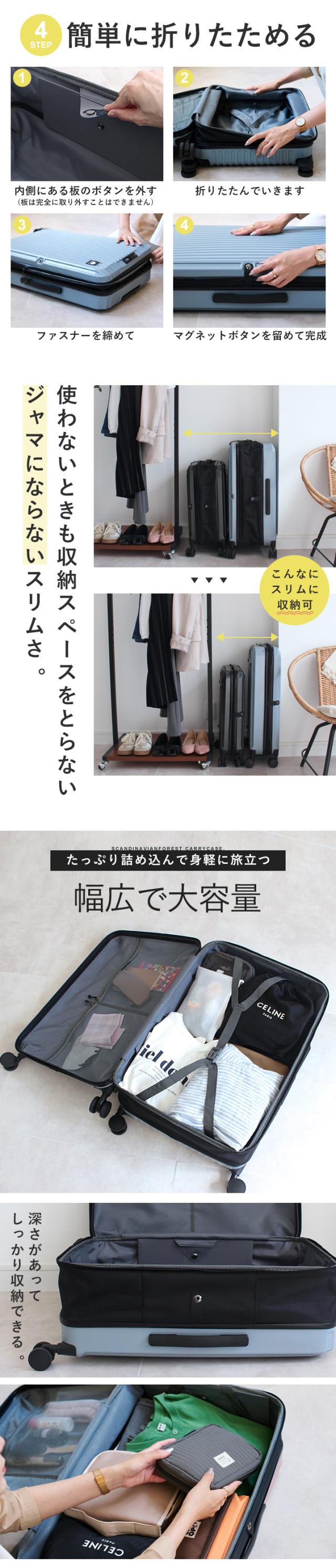 SCANDINAVIAN FOREST 折りたためるスーツケース キャリーケース スーツケース Mサイズ キャリーバッグ 軽量 折りたたみ式 収納しやすい 頑丈 撥水 S/M 大容量 7泊 51L 静音 長期出張 国内旅行 海外旅行 TSAロック オシャレ 北欧 moz【sfrs-2503-m】
