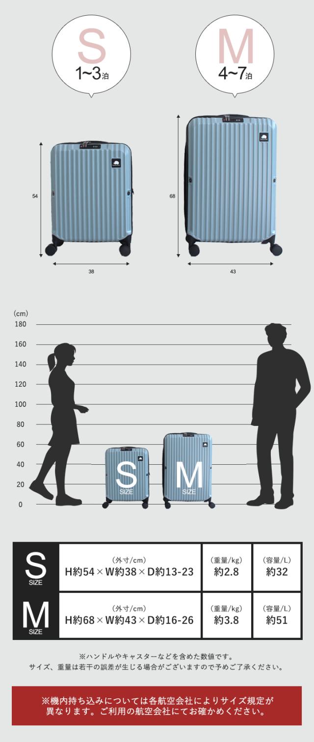 【サイズ(cm)】 M/高さ:約68、横:約43、幅:約16-26 【重量(kg)】 M/約3.8 【仕様】 内側:メッシュファスナーポケット×2 【素材】 本体:ABS+PC、キャリーバー:アルミ ※サイズは当店平置き外寸サイズです。タグの表記とは異なる場合があります。 製品による個体差がある場合がございますので予めご了承下さい。 |
