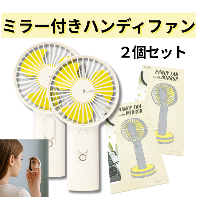 【商品名】ミラー・スタンド付き ハンディファン(2個セット)
