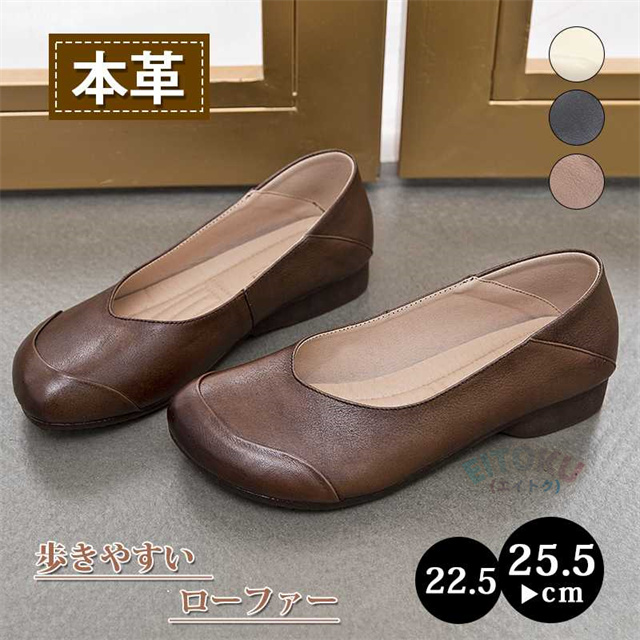 ローファー パンプス レディース靴 痛くない 本革ローファーパンプス ヒールローファー レディース 牛革 ローヒール ラク レザーシューズ柔らかい 立ち仕事 通勤 オフィス おしゃれ かわいい