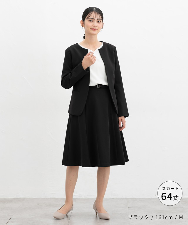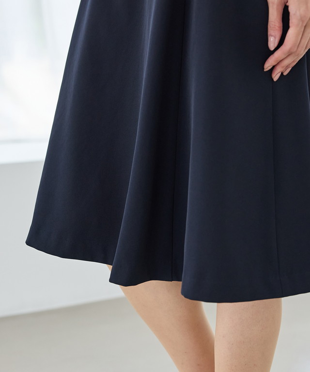 広がりすぎないフレアのきれい見えシルエット、64cm丈タイプ。