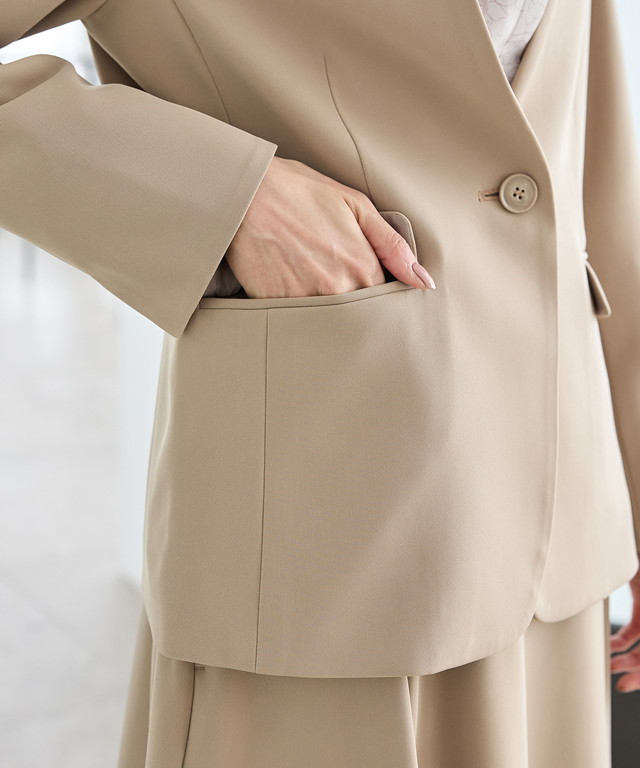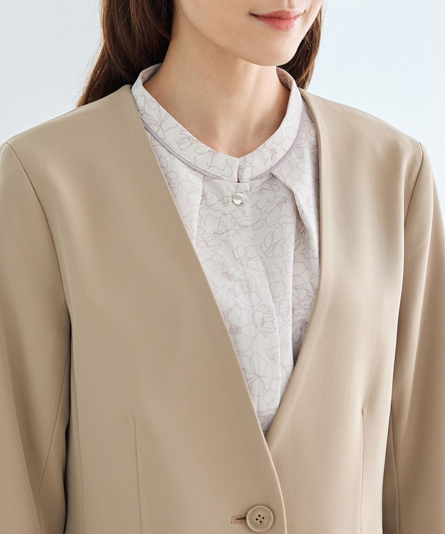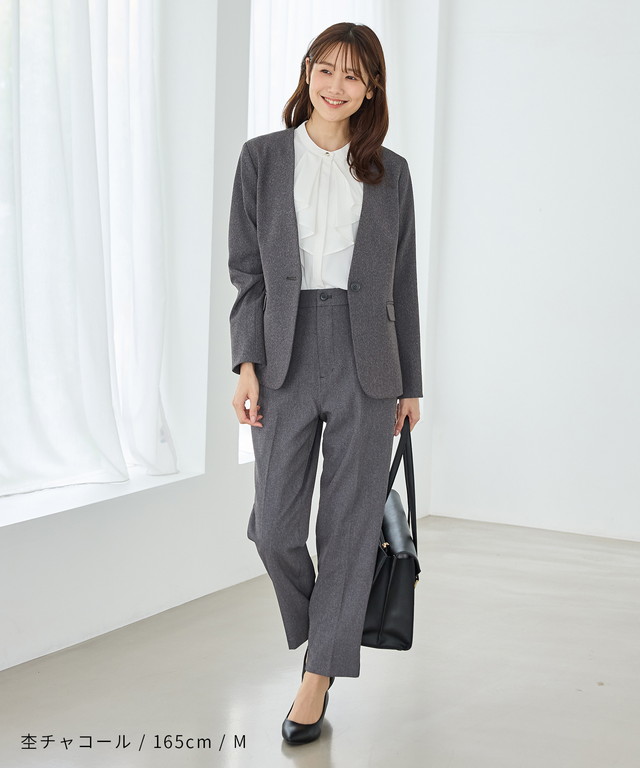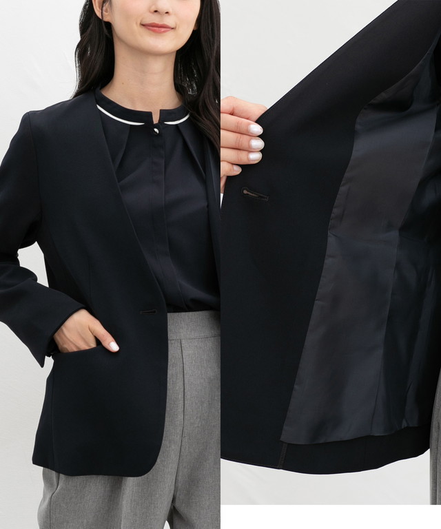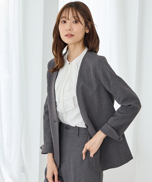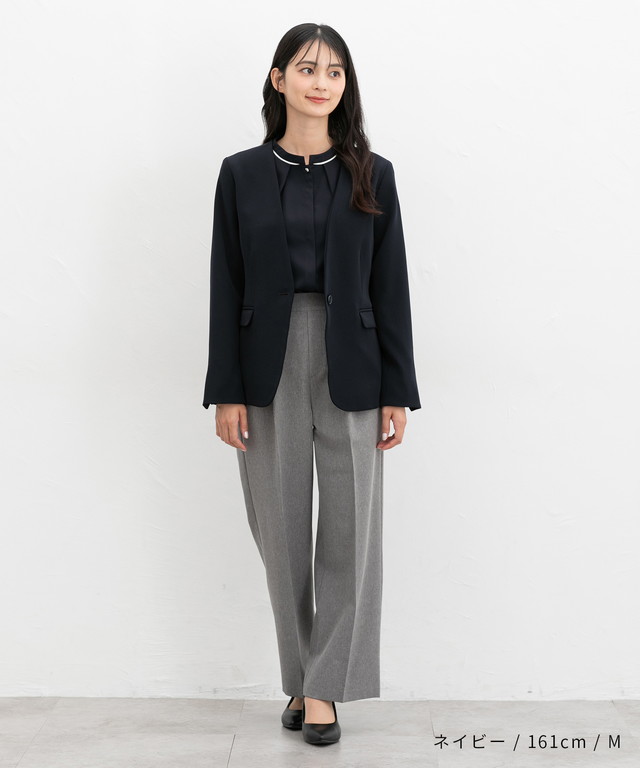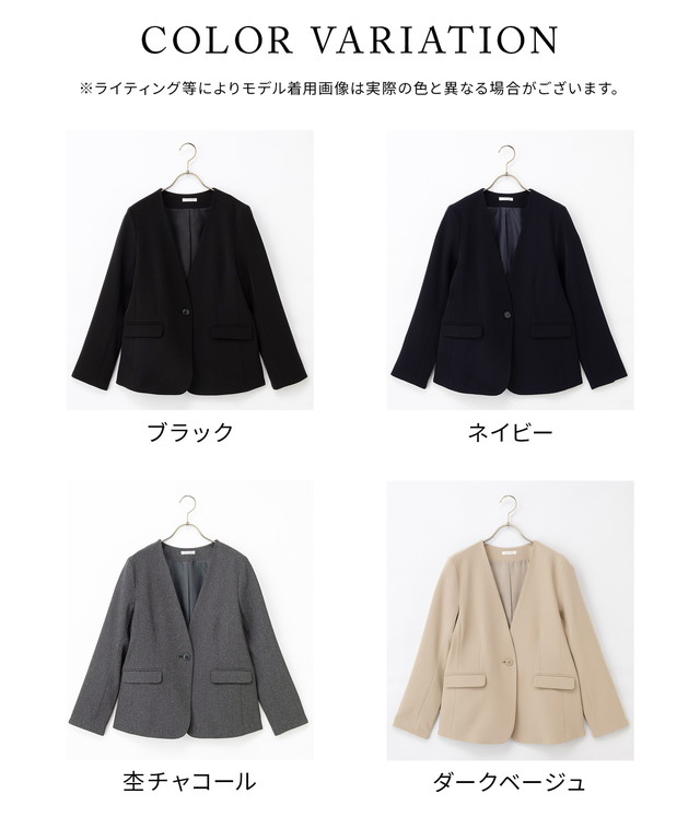 アウター ジャケット ノーカラージャケット セットアップ ウォッシャブル 大きいサイズ オフィス きれいめ レディース Honeys ハニーズ カラーレスジャケット
