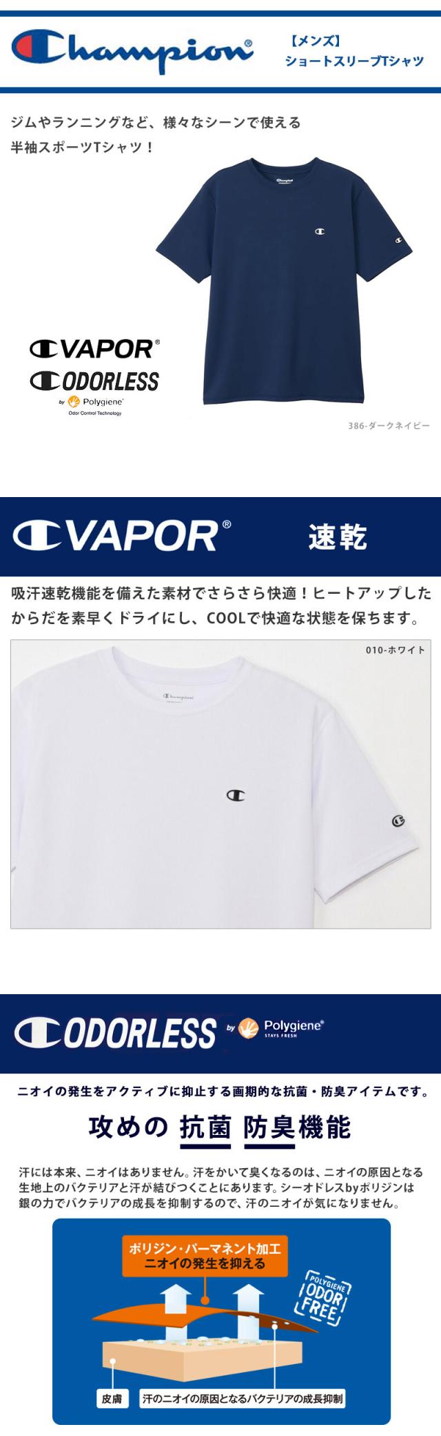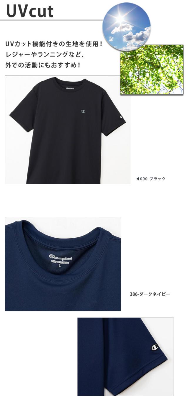 送料無料 Champion チャンピオン メンズ Tシャツ 半袖 C3-CS350 M L XL メール便 スポーツ ウェア 抗菌防臭 吸汗速乾 UVカット ショートスリーブTシャツ クルーネック シャツ 紳士 ランニングウェア ジム トレーニング ワンポイント