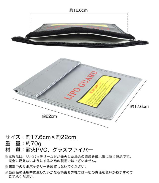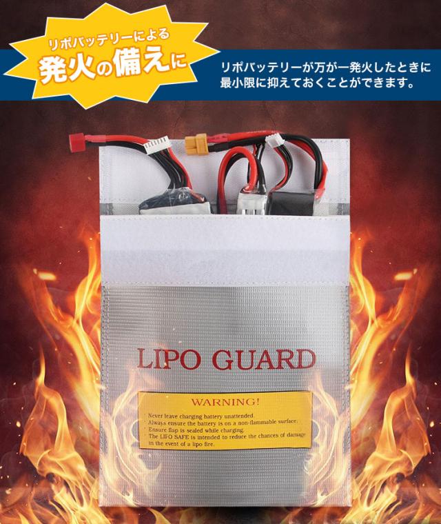 ※本製品は、リポバッテリーが発火した場合の燃焼を最小限に防ぐ製品です。