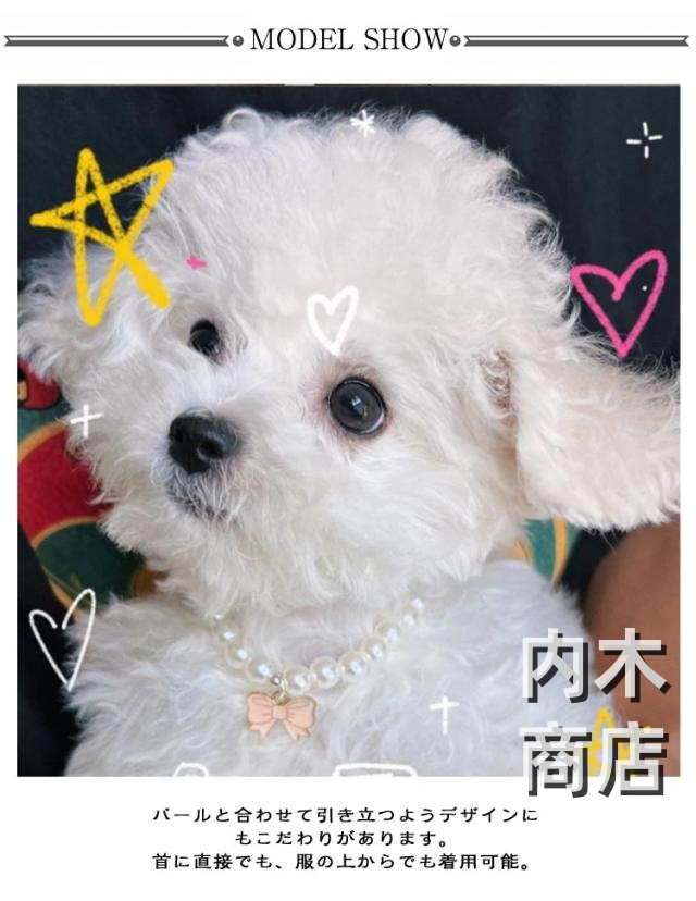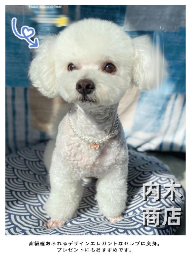 | かわいいペット用パール風のネックレス パールと合わせて引き立つようデザインにもこだわりがあります。 首に直接でも、服の上からでも着用可能。 高級感あふれるデザインエレガントなセレブに変身。 プレゼントにもおすすめです。 | |