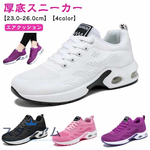 - メッシュ厚底スポーツシューズ、ワイド幅