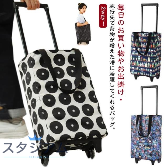 | 2way!毎日のお買い物やお出掛け・旅行先で荷物が増えた時に活躍してくれるバッグ。 タイヤを出してコロコロ転がす楽チンバッグです! 安定感のある4輪キャスター。電車の中でコロコロと転がっていかないメリットも。 収納便利&省スペース!便利な巾着タイプです。 バッグの内側に保冷保温効果のあるアルミを使用しており、生鮮食品などの買い物に便利にお使いいただけます。 | |