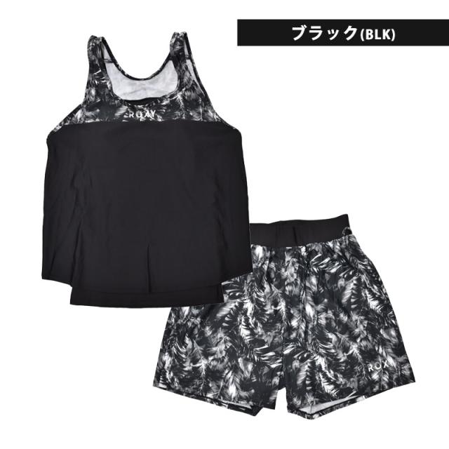 送料無料 ROXY ロキシー スイムウェア レディース フィットネス水着 上下セット RSW254501 ブラック M L 水着 体型カバー ゆったり トップス タンキニ キュロット ショートパンツ 上下 2点セット ブラトップ めくれ防止 水陸両用 ヨガ 水泳 リゾート KEEP SMILING