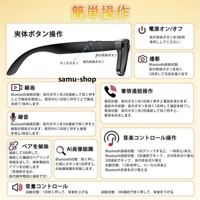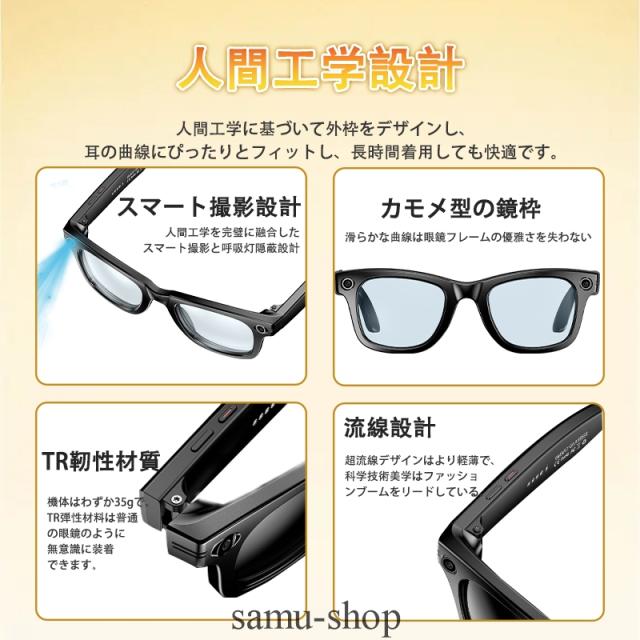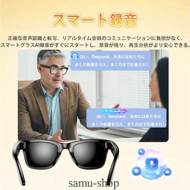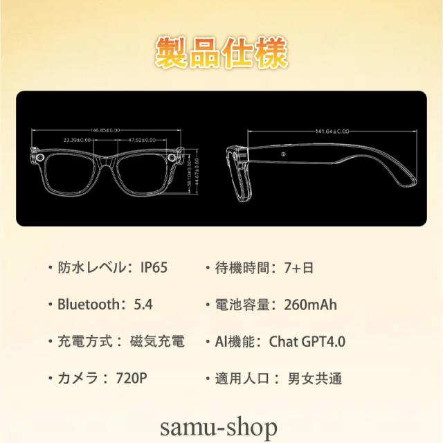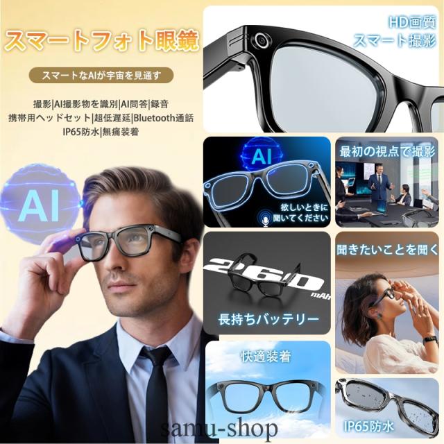 関連キーワード:スマートグラス カメラ付き 録画 録音 撮影 iPhone対応 眼鏡 音楽再生 通話可能 Bluetooth5.4 日本語説明書付 サングラス メガネ マイク内蔵 空気伝導ワイヤレスメガネ 高音質 誕生日プレゼント