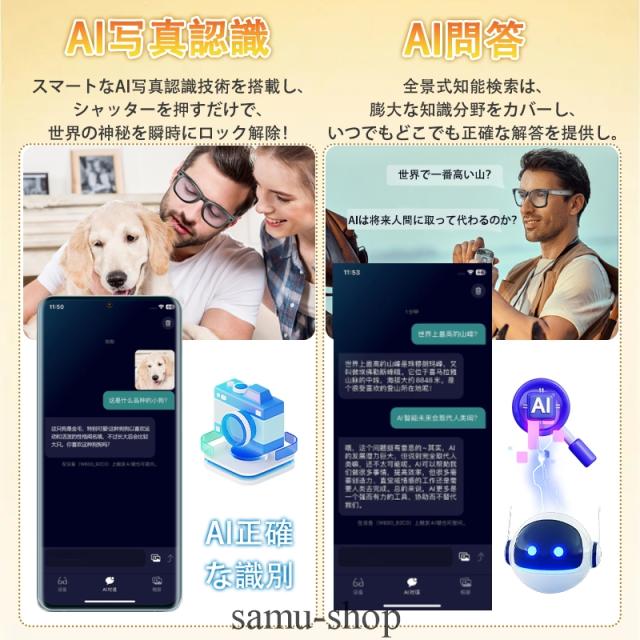 スマートグラス Bluetooth5.4対応 通話機能 高精度AI翻訳 AI画像/物体認識 AIチャットボット リアルタイム音声認識 カメラ・音楽制御 HDカメラ内蔵 開放型イヤホンスピーカー 超軽量 長時間待機 サングラス ブルーライトカット 旅行 会議 講演 通勤 日常用 プレゼント