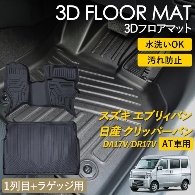 エブリィバン クリッパーバン AT車 3D フロアマット ラグ マット 3Dマット 運転席 助手席 ラゲッジ マット セット DA17V DR17V ピッタリフィット 汚れ防止 防水 防汚 手入れ簡単 丸洗い 車種専用設計 立体 カーマット 1列目 前席 荷室 スズキ 日産 用品
