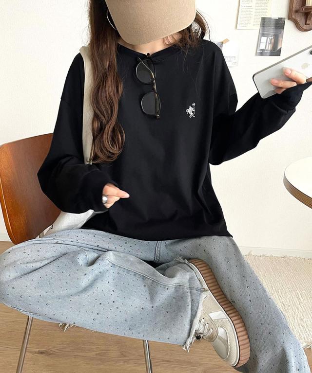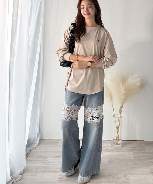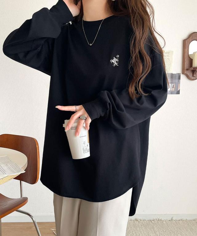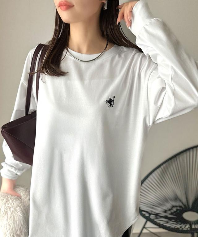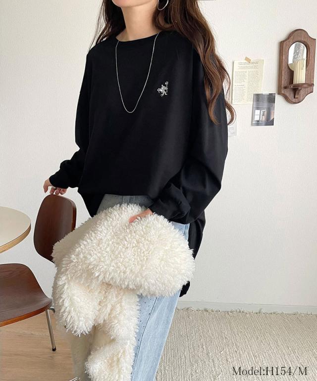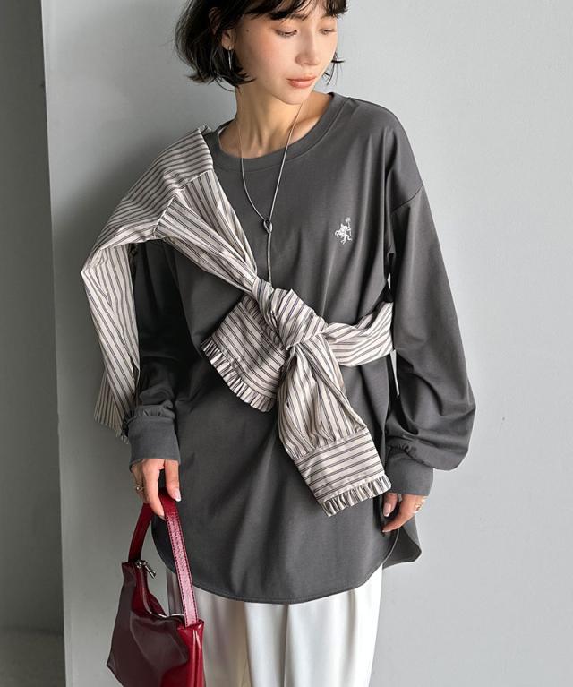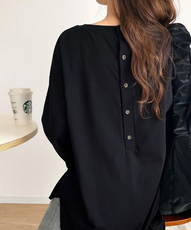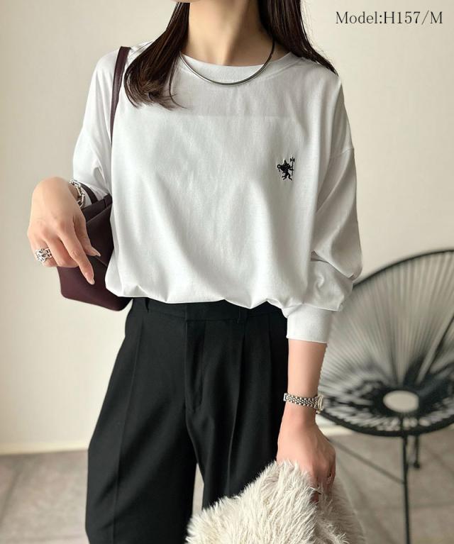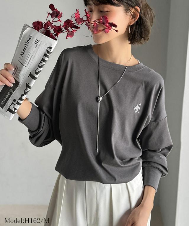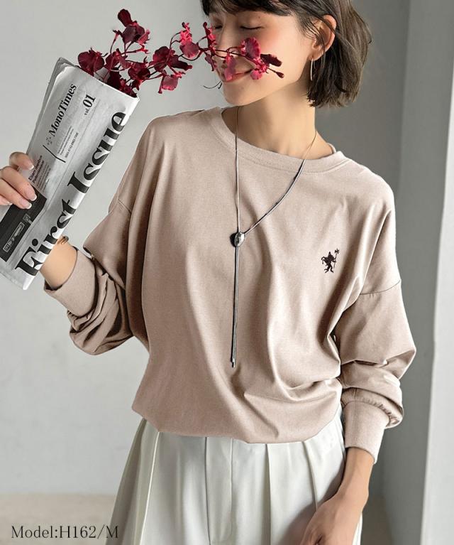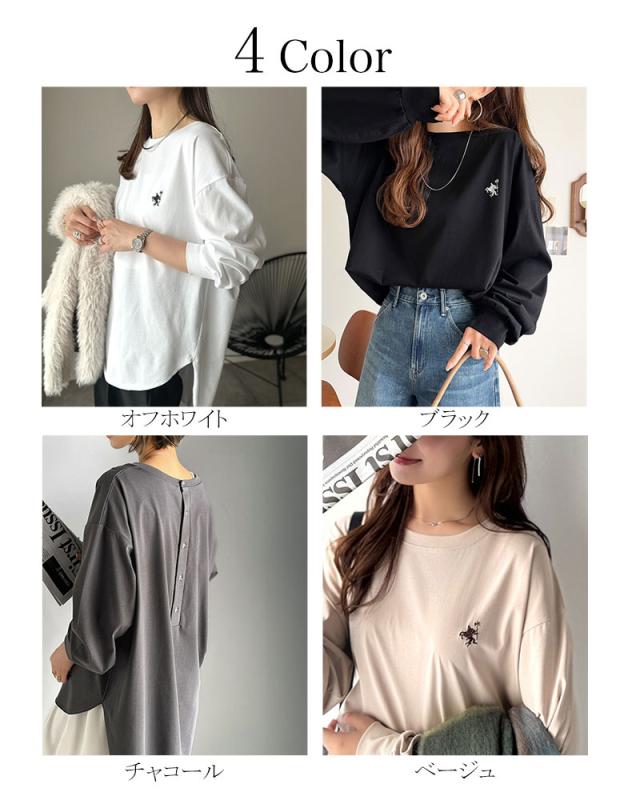 クラシカルエルフ冬新作 トップス Tシャツ レディース カットソー ロンT 長袖 胸刺繍 レイヤード バックヘンリー ゆったり シルケット素材 後ろボタン 立体スリーブ ふんわり袖 体型カバー カジュアル きれいめ 大きいサイズ 2025aw ce1020307