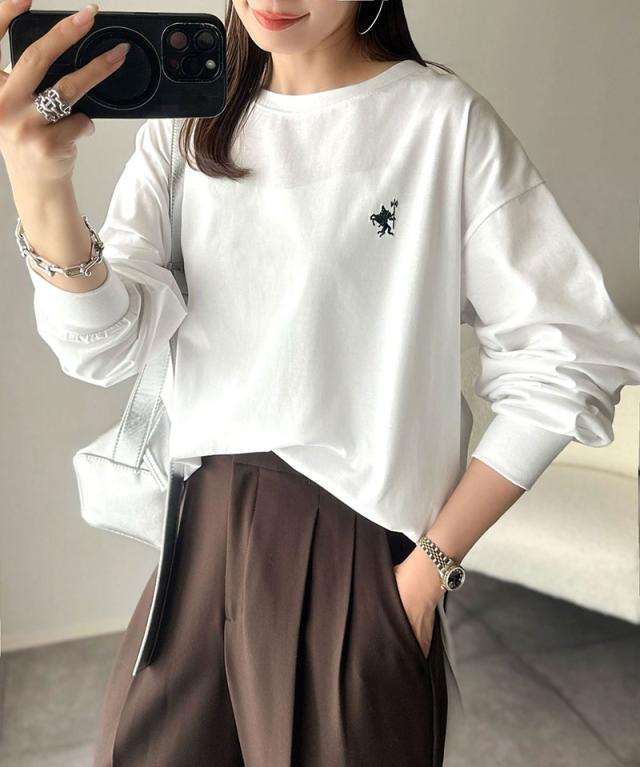 上品なツヤ感のあるシルケット天竺素材を使用した、着心地なめらかなロングスリーブTシャツ。