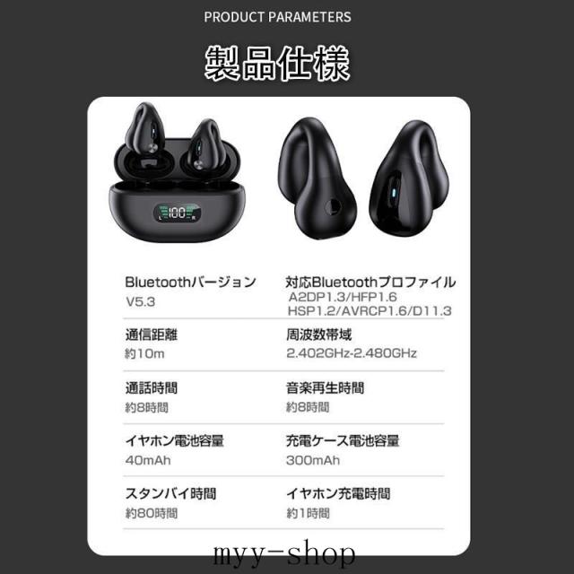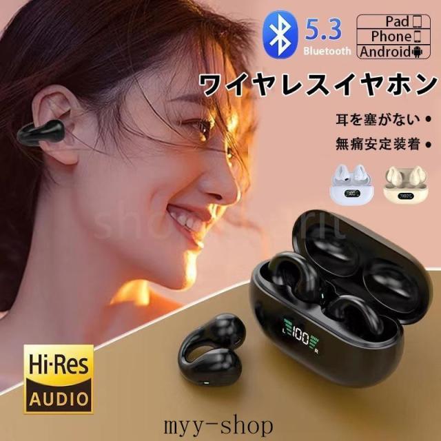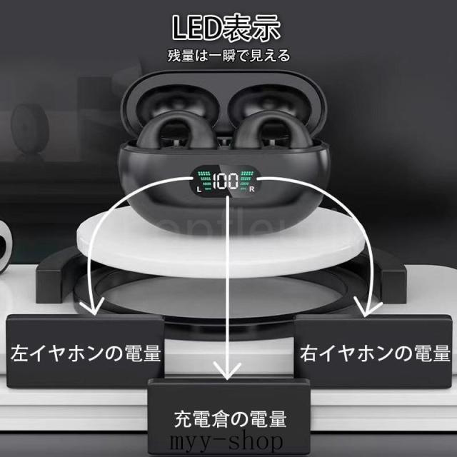 即日発送 ワイヤレスイヤホン イヤホン Bluetooth5.3 両耳 左右分離 LED 残量表示 イヤーカフ型 空気伝導 高音質 Hi-Fi 5g超軽量 無痛 ノイズキャンセリング 通学通勤 プレゼント