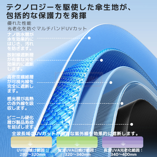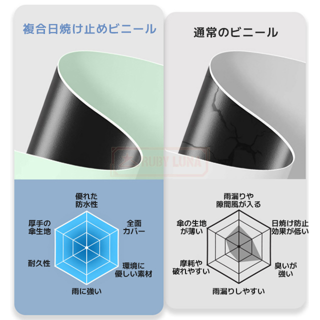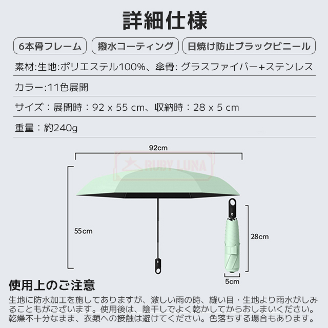 | 素材 | ◆生地:ポリエステル100%、傘骨: グラスファイバー+ステンレス |
