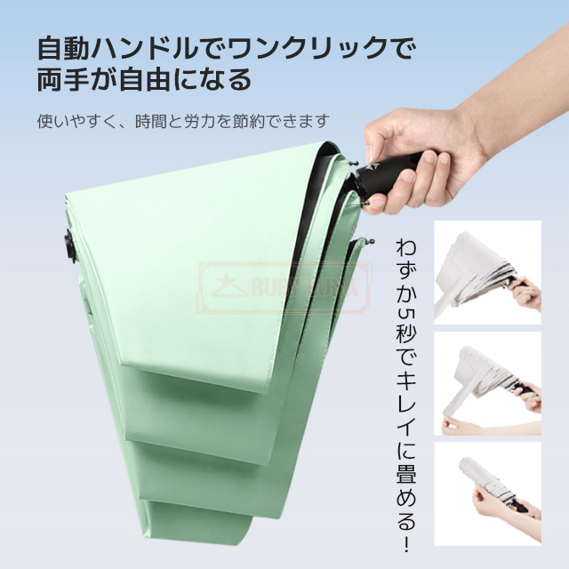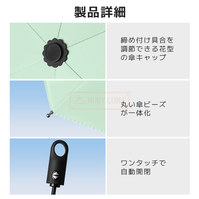 | 【ワンタッチ自動開閉&形状記憶】 | ◆片手で簡単に開閉できる日傘 自動開閉仕様。形状記憶構造で折り畳みもスムーズ、使いやすさ抜群。折りたたみ傘 形状記憶モデルとして注目の一品です。 |