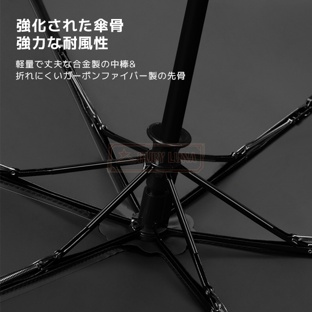 | 【強風にも強い丈夫なフレーム】 | ◆折りたたみ傘 軽量丈夫な構造で、強風時でも安心。高強度骨組みで反り返っても元通り。晴雨兼用 折りたたみ傘として、毎日の通勤・お出かけの頼れる相棒になります。 |