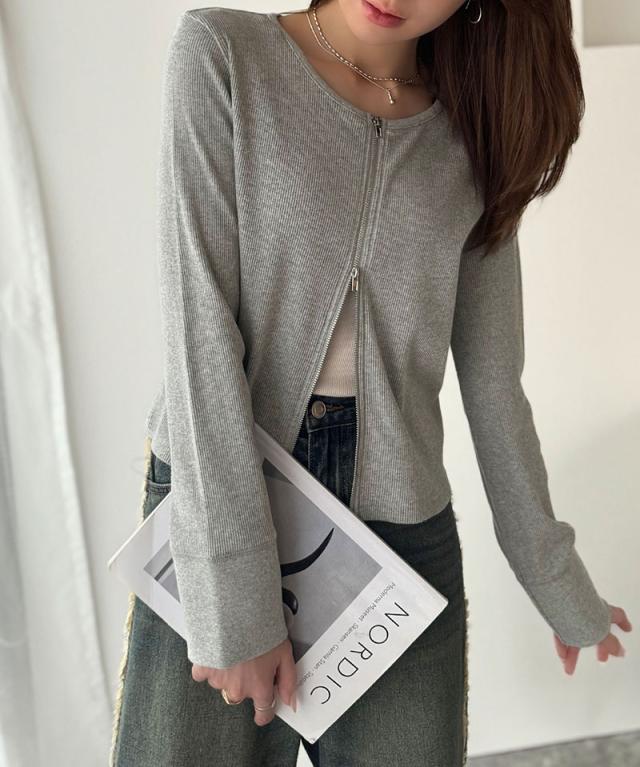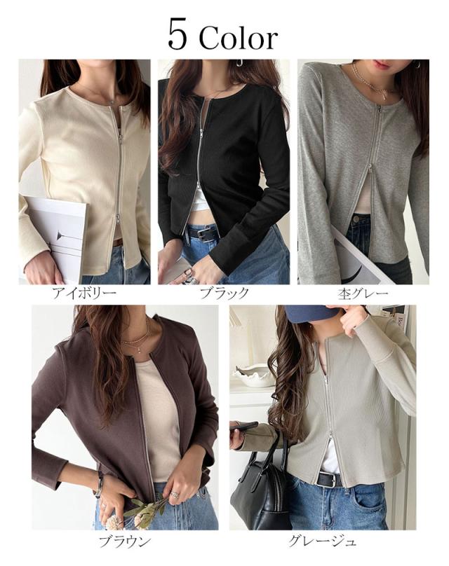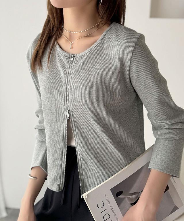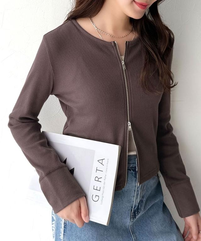 クラシカルエルフ冬新作 トップス カーディガン レディース ダブルジップ 綿100% 上品カーデ 華奢見え コンパクト 羽織り 抜け感 コットン100% ロングシーズン 伸縮性 フィット カジュアル シンプル キレイめ 大きいサイズ 2025aw ce1260451