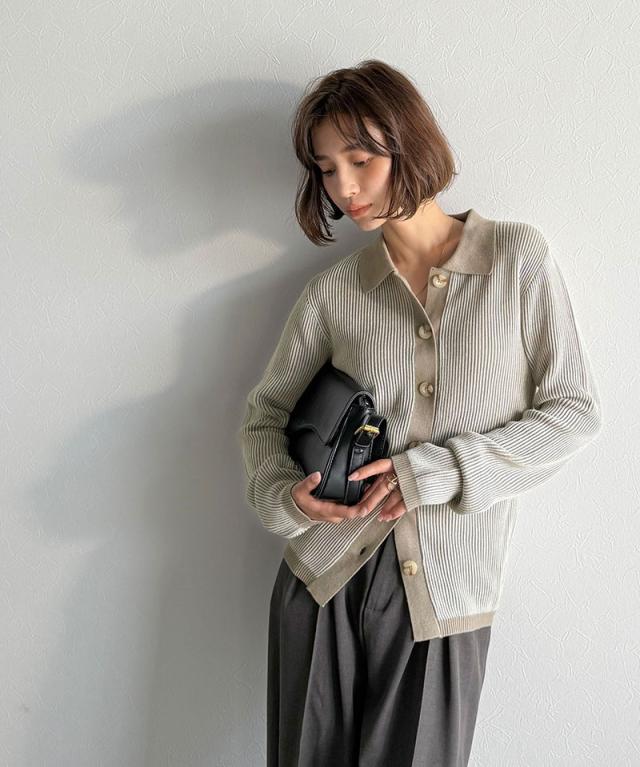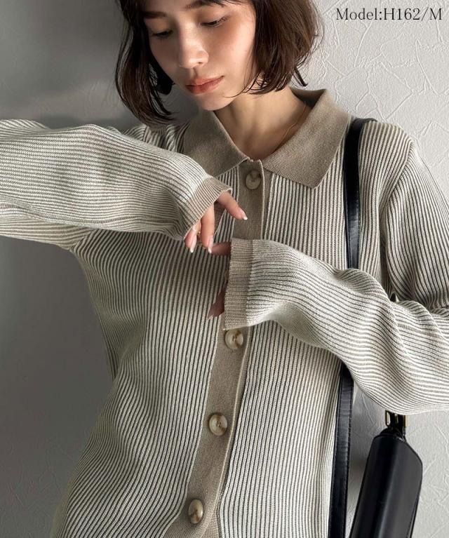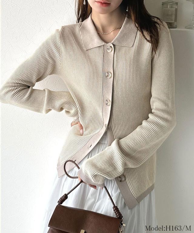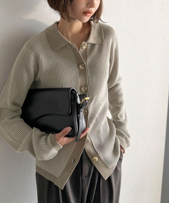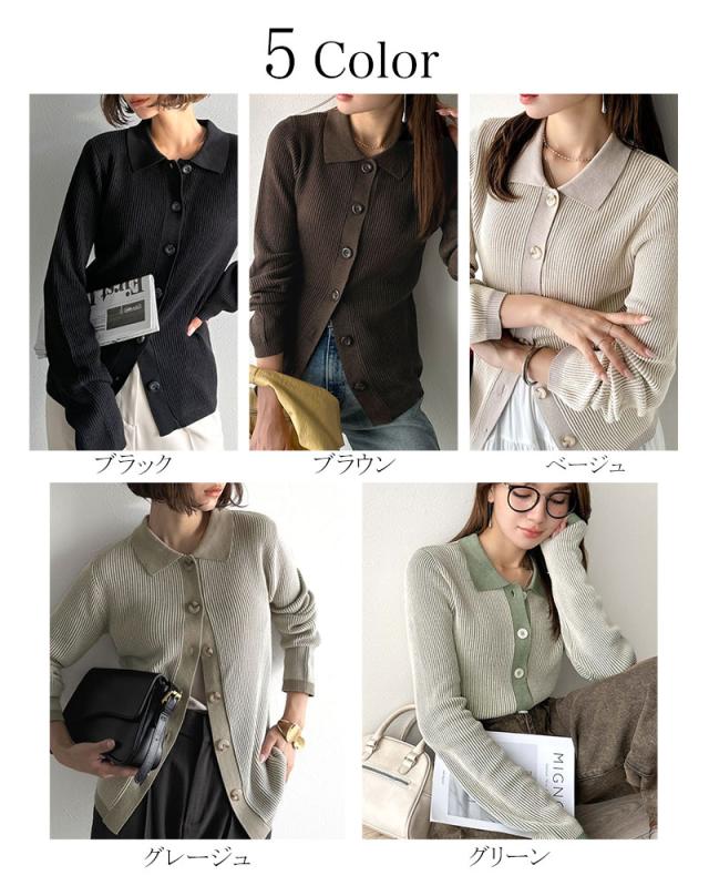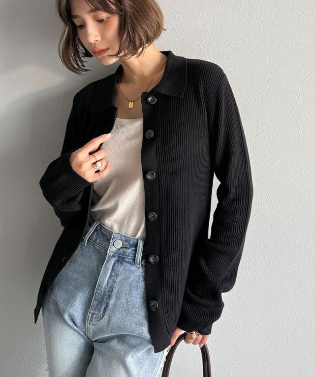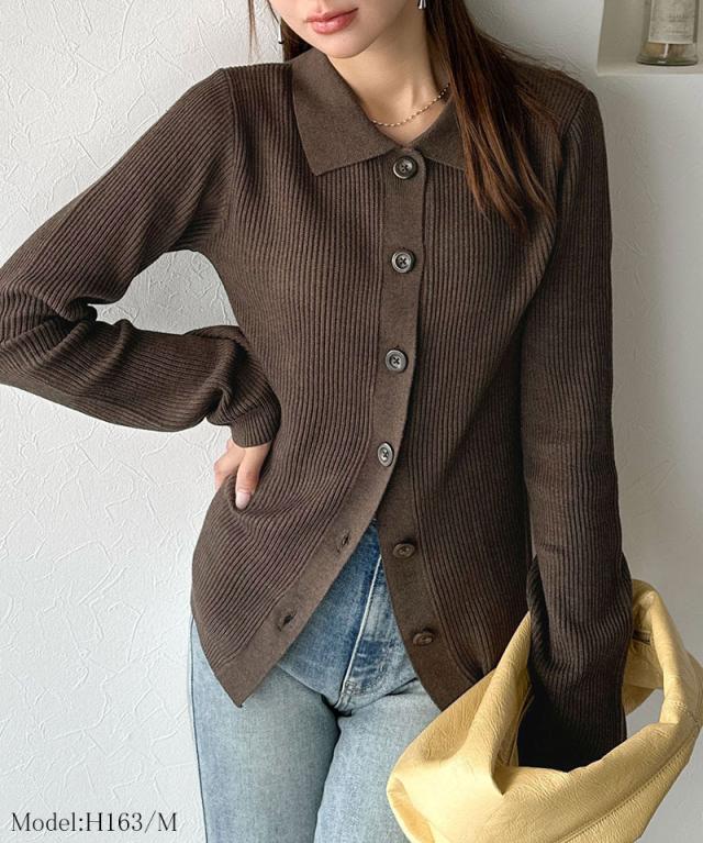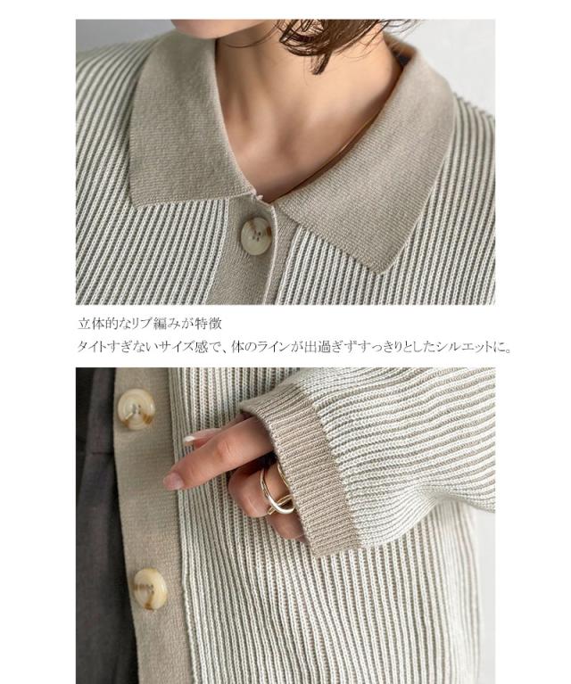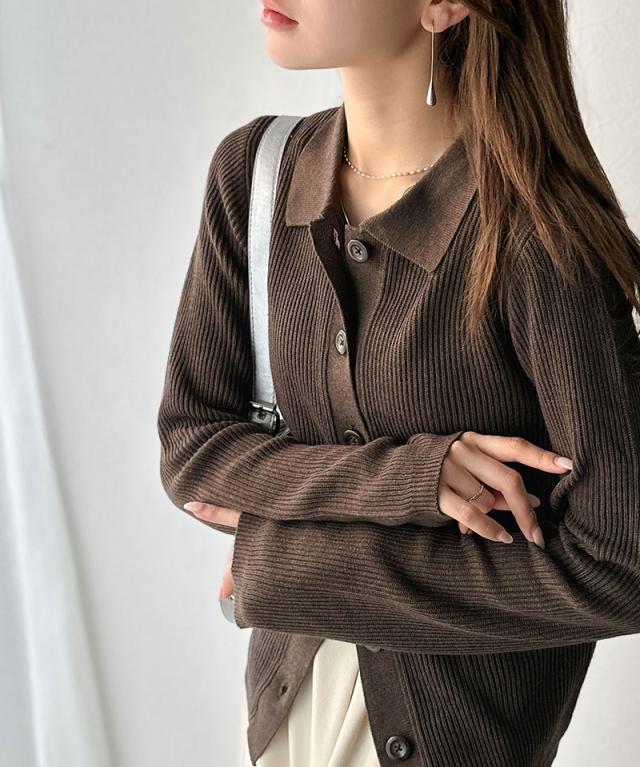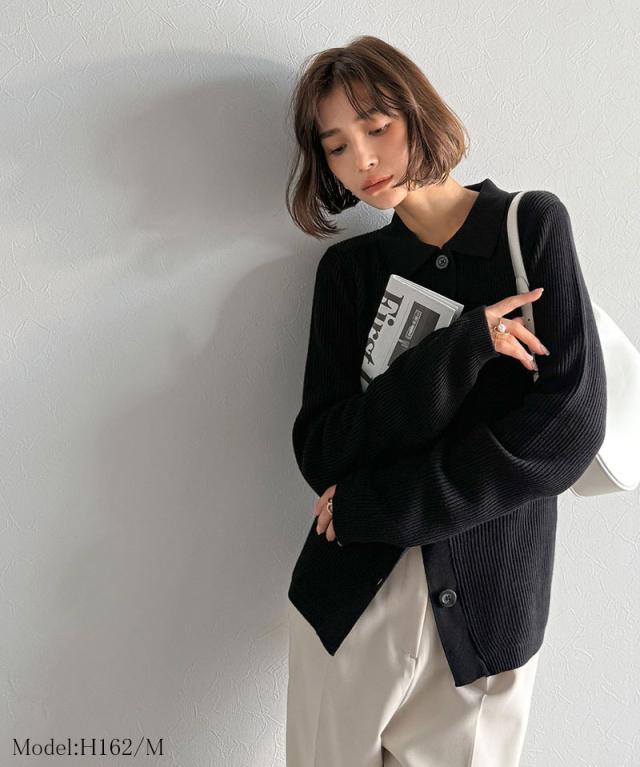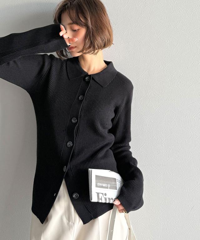 クラシカルエルフ冬新作 トップス カーディガン レディース 襟付き リブ編み ポロニット リブニット スッキリ 立体的 カジュアル きれいめコーデ 羽織り おしゃれ 着回し力抜群 トレンド感 大きいサイズ 2025aw ce1360004