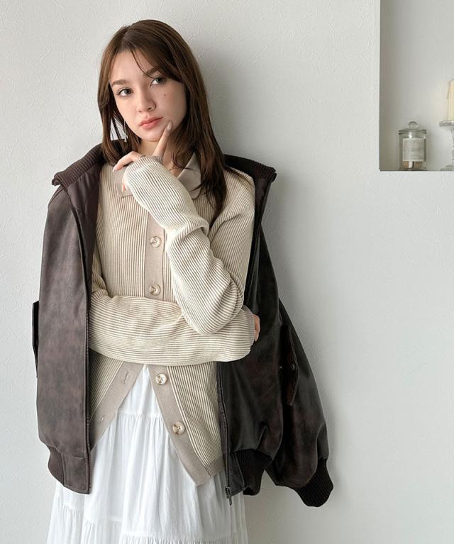縦みえするリブ編みにより、スッキリとした縦長シルエットが魅力♪