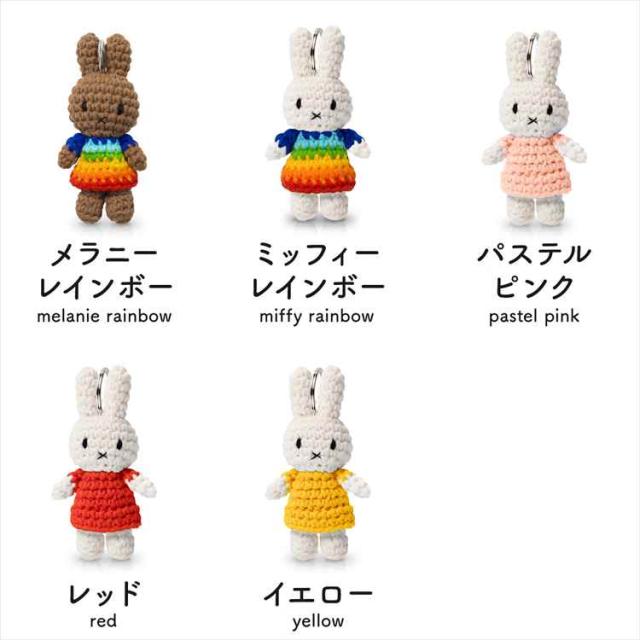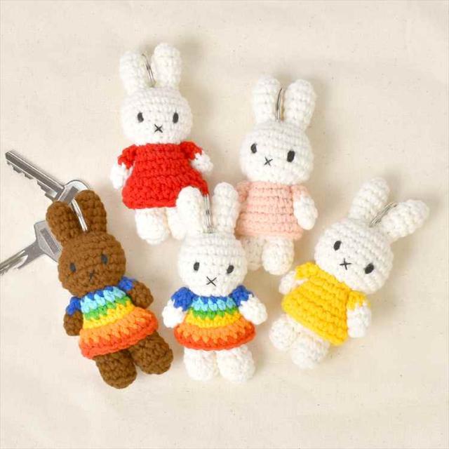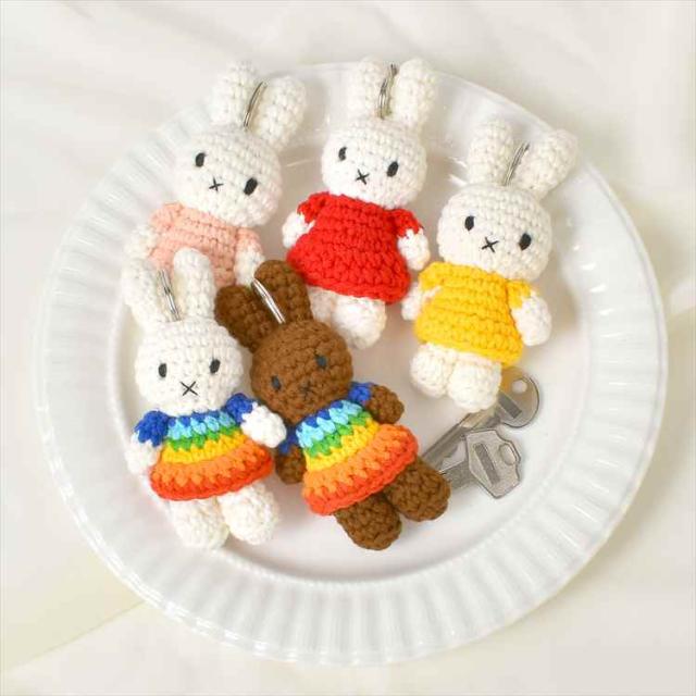 ジャストダッチ ミッフィー キーホルダー キーリング キーハンガー かわいい miffy JUST DUTCH メラニー マスコット キーチャーム 編みぐるみ あみぐるみ 家 車 鍵 取り付け ハンドメイド イエロー レッド パステルピンク レインボー ミッフィーグッズ 誕生日 プレゼント